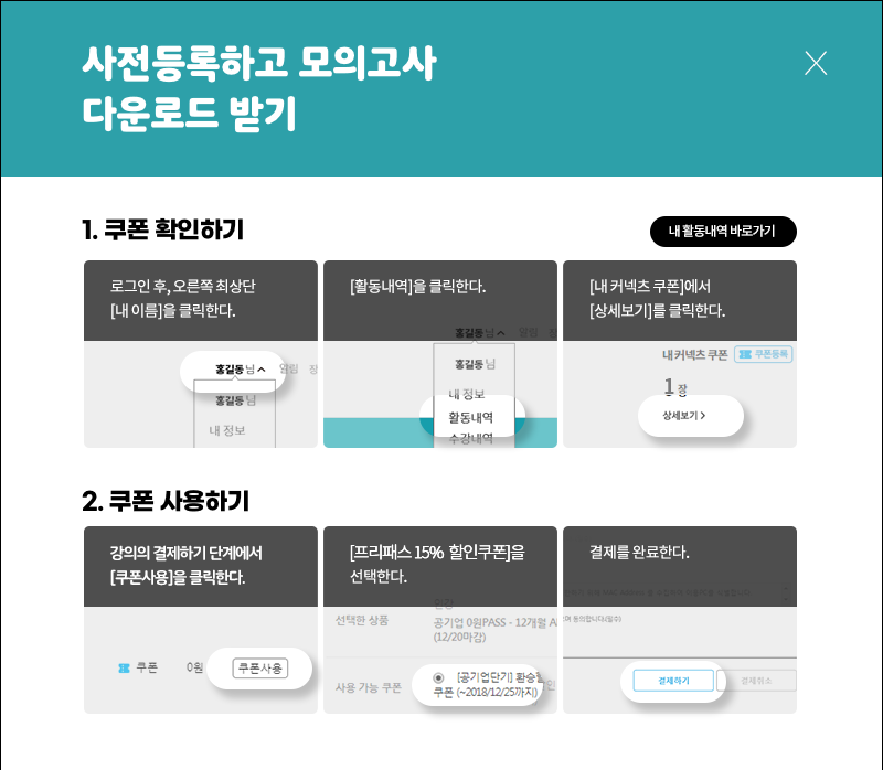 Ⓐ 강좌를 수강했던 이력이 인정되어야 할인 혜택을 받을 수 있습니다.